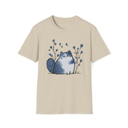 Floral Cat Softstyle T-Shirt - Blue Aesthetic Tee